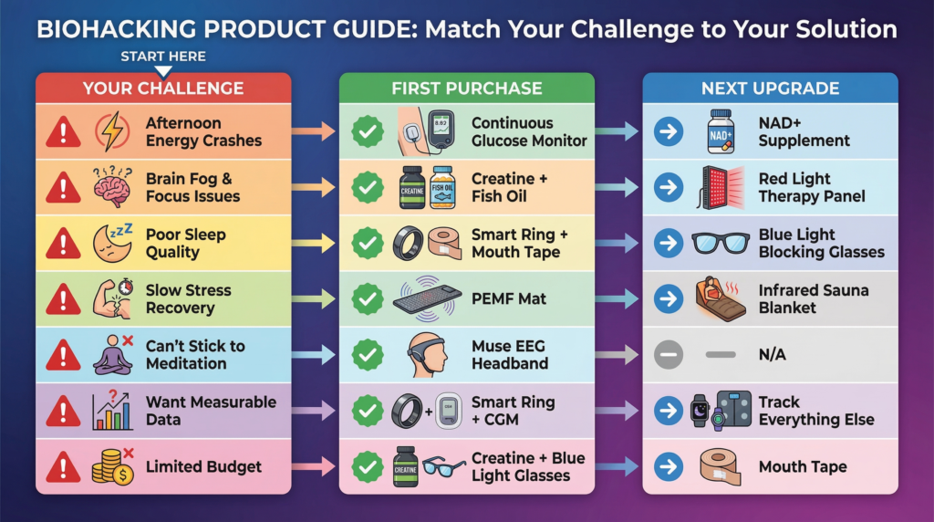 If you’re new to biohacking, start with one or two interventions that address your primary bottleneck. This helps you understand what’s actually working.