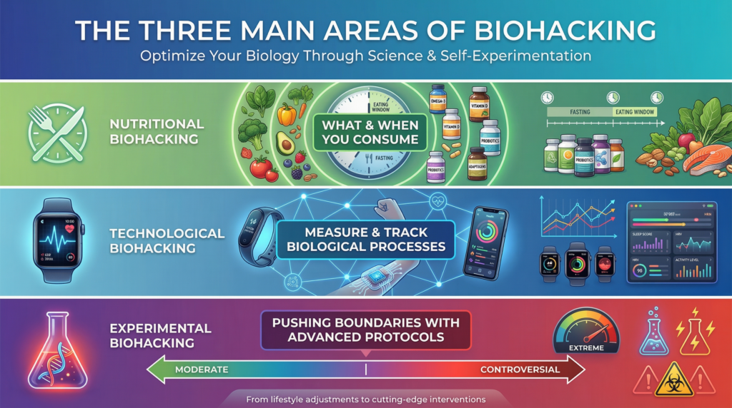 Understanding that biohacking breaks into three main areas changed everything for me. It transformed what felt like an overwhelming mess of contradictory advice into a clear framework I could actually use.